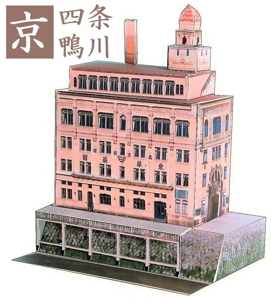 京都、四条から祇園へと向かう道中、鴨川沿いに聳える豪壮な建物。ヴォーリズ建築としても有名な料理店の建物のペーパークラフトです。