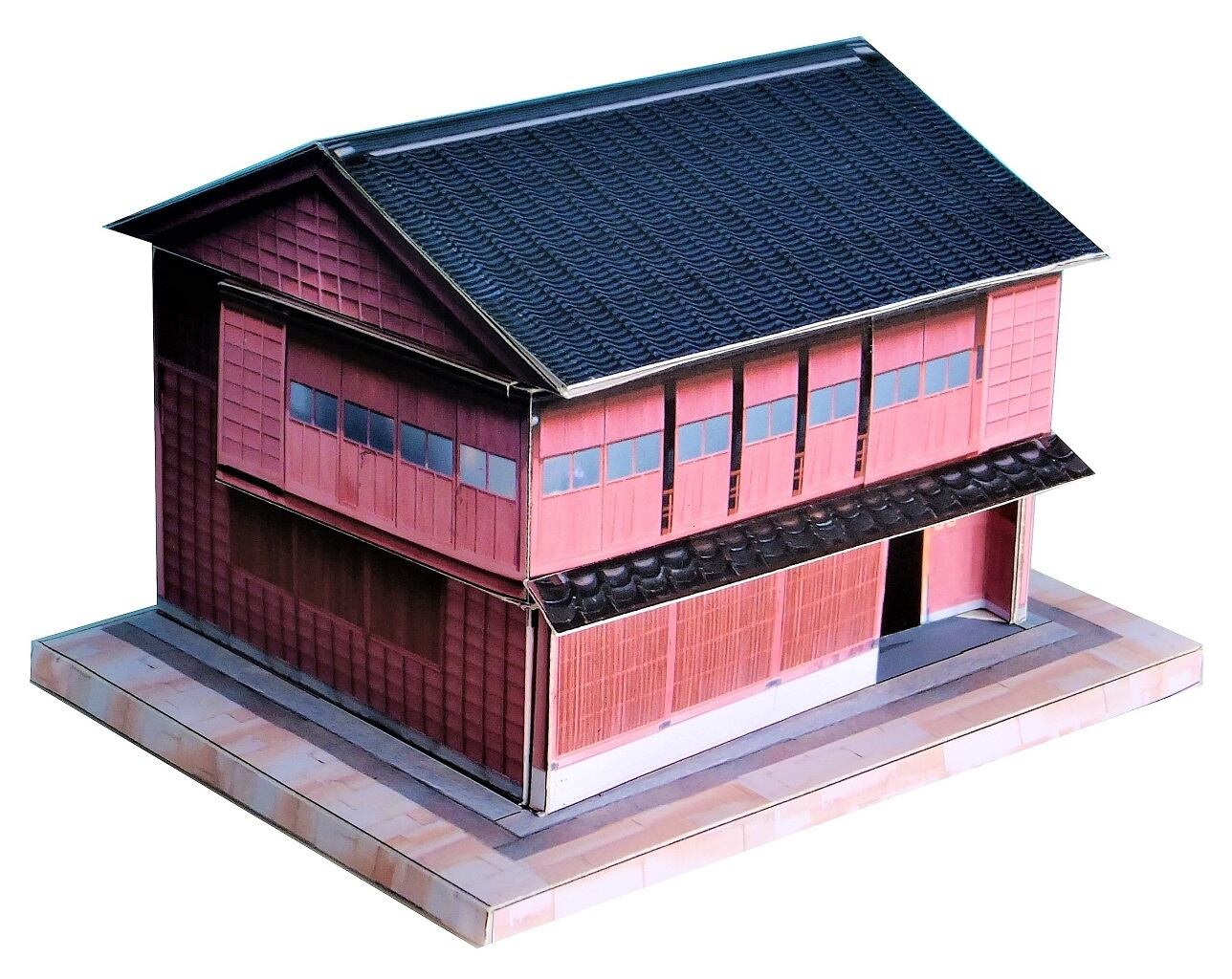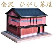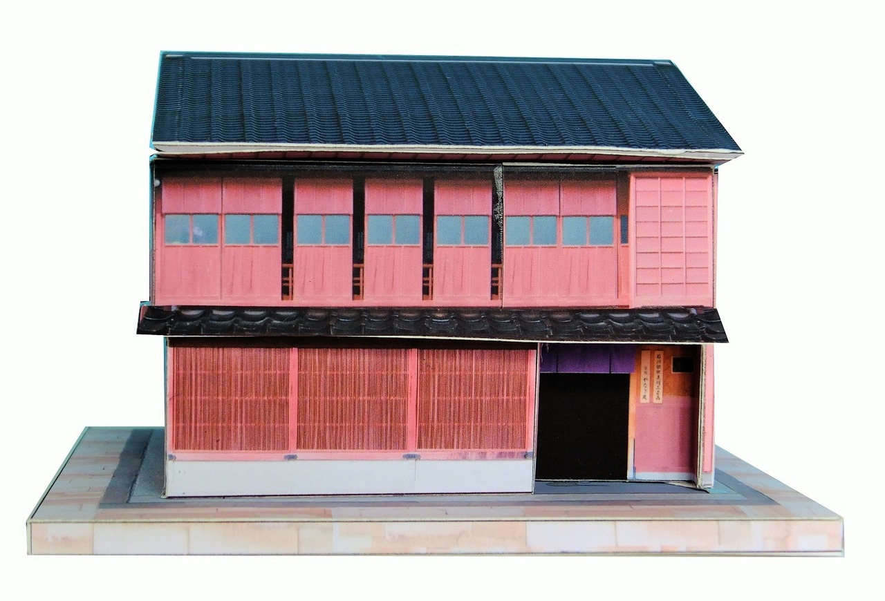 金沢の花街、ひがし茶屋街にあるベンガラ茶屋建築のペーパークラフト・ペーパートラクチャーです。