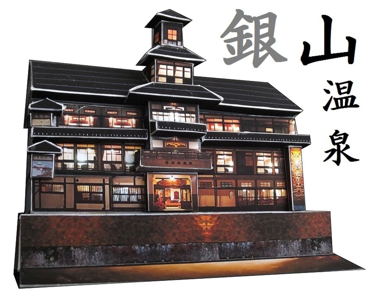 大正ロマンの温泉街、銀山温泉が最も幻想的な姿になる、夜景の景観をペーパークラフトで再現しました。