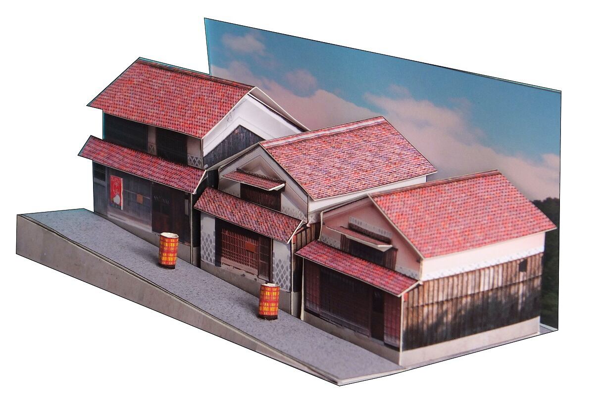 吹屋 ベンガラ屋根 ペーパークラフト