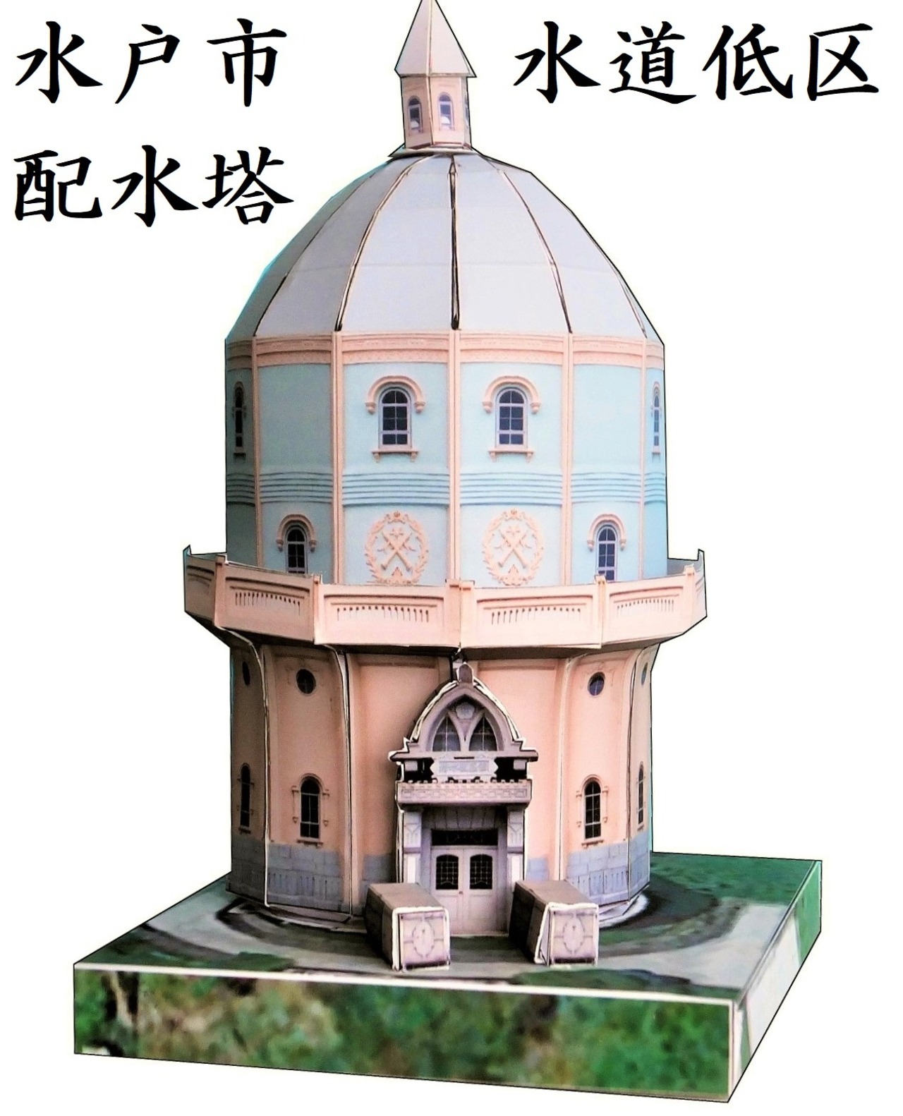 水戸駅から徒歩圏内にある美しい配水塔、水戸市水道低区配水塔をモデルにしたペーパークラフトです。