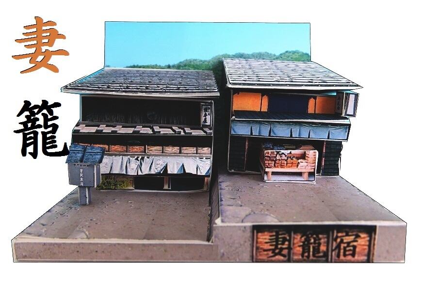 中山道の宿場町、木曽路・妻籠宿をペーパークラフトで再現しました。